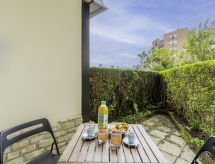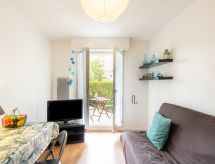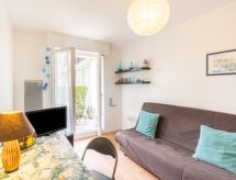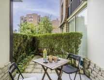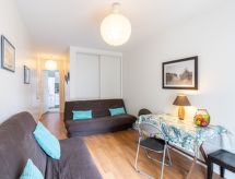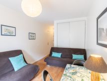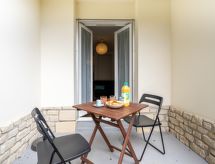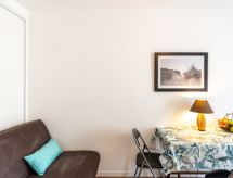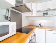 Estudio 25 m2 en el 1° piso, orientación oeste. Salón-comedor con 1 sofá-cama doble (140 cm, 190 cm de longitud), TV (pantalla plana). Salida a la terraza. Cocina (horno, lavavajillas, 3 placas de vitrocerámica, microondas, cafetera eléctrica). Ducha/WC. Calefacción eléctrica. Suelo de parquet. Terraza 3 m2. El alojamiento dispone de: Internet (Wifi, extra).- Características del alojamiento