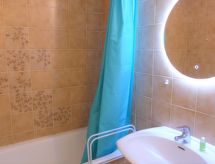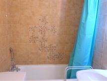 Apartamento de 2 habitaciones 45 m2 en el 1° piso, orientación noroeste. Salón-comedor con 1 sofá-cama doble (140 cm, 190 cm de longitud), TV (pantalla plana), persianas eléctricas. Salida al balcón. 1 dorm. con 1 cama de matrimonio (140 cm, 190 cm de longitud), persianas eléctricas. Rincón-cocina (horno, 3 placas de vitrocerámica, tostadora, hervidor de agua eléctrico, microondas, cafetera eléctrica). Baño, WC separado. Calefacción eléctrica. Balcón grande 30 m2. Muebles de balcón. Vista espléndida al mar. El alojamiento dispone de: lavadora, plancha. Internet (Wifi, extra). Garaje n. 12/13. A tener en cuenta: detector de humo.- Características del alojamiento