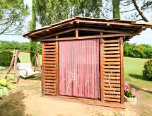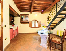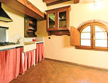 Apartamento de 2 habitaciones 40 m2 en el 1° piso. Con mobiliario funcional y con mucha madera: salón-comedor con TV satélite y aire acondicionado. 1 dorm. doble, abuhardillado, abierto con aire acondicionado. Rincón-cocina). Ducha/bidet/WC. Calefacción de gas. El alojamiento dispone de: Internet (Wifi, gratis). Entrada por una escalera exterior a compartir con el alojamiento "Il Granaio".- Instalaciones