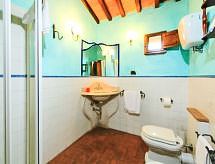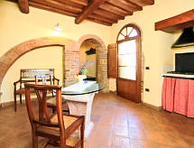 Ischieto es una antigua casa de campo de origen medieval, a 800 m del pueblo de Serre di Rapolano, restaurada recientemente con esmero, situada a sólo 28 km de Siena y a 30 km de Montalcino, en la encantadora región al sur de Siena. El restaurante hace comida típica de manera tradicional. La casa está situada en una colina a sólo 2 km de un famoso centro de aguas termales. Está dividida en 5 pequeños apts., amueblados de forma sencilla y agradable, con TV (sat.) y de calefacción (según consumo, extra). Dispone de espacios verdes exteriores equipados, de una bonita piscina con hidromasaje de uso exclusivo para los clientes, campo de fútbol-sala, tiro al arco y bicicletas de montaña (2 por apto. gratuitas). El resturante de la hacienda está abierto todas las noches para la cena y bajo petición para comida. Para los apasionados del caballo, el propietario, a petición y según disponibilidad, organiza paseos por los bosques de los alrededores (cabalos a unos 6 km). Granja "Casale Ischieto", muy antigua, reformada, rodeada de campos. A 800 m del centro de Serre di Rapolano, a 28 km del centro de Siena, a 30 km del centro de Montalcino, en una colina, en el campo. Comunitario: terreno 50 ha, piscina (16 x 9 m, 80 - 165 cm de profundidad, Disponible por temporada: 15.May. - 03.Oct.) con escalera interior. Ducha exterior, muebles de jardín. Privado: muebles de jardín. En el inmueble: restaurante, bar, calefacción central, calefacción disponible desde el 01.11. al 15.04., bicicletas a disposición. Acceso hasta la casa. Aparcamiento en el mismo terreno. Tienda 800 m, parada de autobús 500 m, estación de tren "Rapolano Terme" 2 km, piscina termal "Rapolano Terme" 2 km. Campo de golf (9 hoyos) 21 km, tenis 2 km, centro ecuestre 6 km. Atracciones en los alrededores: Castelnuovo Berardenga 18 km, Montepulciano 31 km, Pienza 37 km, San Quirico D'orcia 44 km. A tener en cuenta: adecuado para familias, adecuado para la tercera edad. Se pueden reservar alojamientos adicionales.Interior