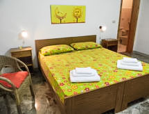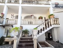 Apartamento de 3 habitaciones 120 m2, en la planta baja. Parcialmente reformado en 2015, con mobiliario funcional y confortable: 1 dorm. doble con aire acondicionado y bomba de calor, caliente. 1 dorm. con 2 camas, ducha/bidet/WC, aire acondicionado y bomba de calor, caliente. 1 dorm. con 2 camas, baño/bidet/WC, aire acondicionado y bomba de calor, caliente. Grande cocina (4 fogones, horno, congelador) con TV cable. Ducha/bidet/WC. Aire acondicionado, aire caliente (extra). Terraza 40 m2. Muebles de terraza.- Instalaciones