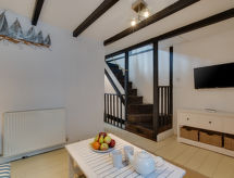 4 habitaciones casa de campo en 4 plantas. Con mobiliario confortable y agradable: cocina (4 fogones, horno, microondas, congelador). Planta superior: salón con TV (pantalla plana), DVD. Baño/ducha/WC. Planta superior 2: 1 dorm. doble con 1 cama doble. Habitación de paso con 1 cama (91 cm de longitud). Calefacción. El alojamiento dispone de: Internet (Wifi, gratis). A tener en cuenta: casa para no fumadores. Permitido máximo 2 mascotas / perros. TV solamente EN. Se aceptan como máximo 2 adultos.- Características del alojamiento