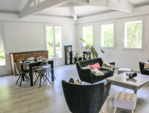 Casa 4 habitaciones 150 m2 en 2 plantas. Espacioso, con mobiliario confortable: 1 dorm. con 1 cama de matrimonio (160 cm, 200 cm de longitud). Ducha, WC separado. Calefacción. Planta superior: salón-comedor con TV. 1 dorm. con 1 cama de matrimonio (160 cm, 200 cm de longitud). 1 dorm. con 1 cama de matrimonio (140 cm, 200 cm de longitud). Grande cocina abierta (horno, lavavajillas, 4 Placas de inducción, microondas, congelador). Ducha/WC, doble lavabo. Terraza. Tumbonas. El alojamiento dispone de: lavadora, secadora, plancha. Internet (Wifi, gratis). A tener en cuenta: detector de humo.- Instalaciones