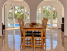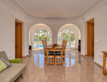 Villa "Chill Out", muy amplia, muy bonita, muy confortable de 3 plantas, reformada. En la localidad, a 2.5 km del centro de Dénia, lugar tranquilo, soleado, a 2.8 km del mar, a 3.4 km de la playa. Privado: terreno en estado natural (vallada), jardín en diferentes niveles grande, bonito con plantas y árboles, piscina rectangular (8 x 4 m, Disponible por temporada: 01.Ene. - 31.Dic.). Ducha exterior, terraza-jardín, terraza, muebles de jardín, caseta de barbacoa. En el inmueble: aire acondicionado, lavadora. Aparcamiento en el mismo terreno. Supermercado 1.9 km, restaurante 1.5 km, bar 500 m, playa de arena 3.5 km. Puerto deportivo 2.8 km, puerto para yates 2.8 km, campo de golf 6.3 km, escuela de surf 2.8 km, escuela de vela 2.8 km, tenis 3.7 km. El propietario no acepta grupos de adolescentes/jóvenes.Interior