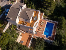 Villa 7 habitaciones en 3 plantas. Espacioso y luminoso, con mobiliario muy moderno y de estilo: 1 dorm. con 1 cama de matrimonio (135 cm, 190 cm de longitud), ducha/WC (privado) aire acondicionado y bomba de calor, caliente. 1 dorm. con 2 camas (90 cm, 190 cm de longitud), aire acondicionado y bomba de calor, caliente. 1 dorm. con 1 cama de matrimonio (135 cm, 190 cm de longitud), aire acondicionado y bomba de calor, caliente. Salida a la terraza. 1 dorm. con 1 cama de matrimonio (150 cm, 190 cm de longitud), baño/ducha/WC y doble lavabo (privado) TV satélite, aire acondicionado y bomba de calor, caliente. Salida a la terraza. Ducha/WC. En planta inferior: (escalera exterior) salón-comedor con aire acondicionado y bomba de calor, caliente. Salida a la terraza, a la piscina. 1 dorm. con 1 cama de matrimonio (150 cm, 190 cm de longitud), ducha/WC (privado) aire acondicionado y bomba de calor, caliente. 1 dorm. con 2 camas (90 cm, 190 cm de longitud), ducha/WC (privado) aire acondicionado y bomba de calor, caliente. Cocina abierta (horno, lavavajillas, 4 placas de vitrocerámica, congelador). Salida a la terraza, a la piscina. Planta superior: salón-comedor con TV satélite, aire acondicionado y bomba de calor, caliente. 1 dorm. con 1 cama de matrimonio, aire acondicionado y bomba de calor, caliente. Cocina (horno, lavavajillas, 3 placas de vitrocerámica, microondas, congelador, cafetera eléctrica). WC separado. Terraza grande 60 m2, terraza grande 25 m2. Muebles de terraza, barbacoa, tumbonas, rincón para sentarse. Vista panorámica espléndida al mar, a las montañas y al valle. El alojamiento dispone de: lavadora. Internet (Wifi, gratis). Plaza de aparcamiento (4 Coches). AT-474251-A- Actividades en la zona
