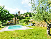 Casa de campo "Cortona Sunshine", 490 m s.n. m., individual. A 2 km del centro de Cortona, lugar soleado, en el campo. Privado: jardín 500 m2 (vallado), piscina (9 x 4 m, 100 - 200 cm de profundidad, Disponible por temporada: 01.May. - 15.Oct.). Porche, muebles de jardín, lugar para hoguera, caseta de barbacoa. En el inmueble: acceso a internet. Acceso (200 m camino de tierra). Aparcamiento en el mismo terreno. Tienda de comestibles 2 km, supermercado 5 km, restaurante 2 km, estación de tren "Camucia-Cortona" 5 km, lago Trasimeno 10 km. Atracciones en los alrededores: Arezzo 30 km, Siena 80 km, Perugia 80 km, Firenze 120 km.Interior