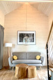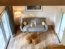 Casa 2 habitaciones 27 m2 en 2 plantas. Con mobiliario confortable y agradable: salón con 1 sofá-cama y rincón-comedor. Rincón-cocina (horno, lavavajillas, 4 placas de vitrocerámica, hervidor de agua eléctrico, congelador, cafetera eléctrica). Ducha/WC. Calefacción eléctrica. Planta superior: altillo con 1 cama doble. Suelo de madera. Mobiliario confortable de estilo rural. Terraza 8 m2. Muebles de terraza. Vista bonita al lago y al paisaje.- Instalaciones
