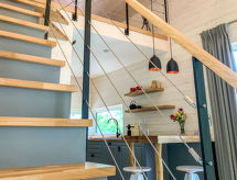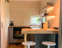Mladotice a 8 km de Písek: Casa "Cosy tiny house", pequeña, moderna de 2 plantas, individual del año 2019, rodeada de árboles. En la periferia, junto al bosque, en el campo. Comunitario: terreno 400 m2 (vallado), jardín, cuidado, estanque. Badminton. Privado: terraza, muebles de jardín. En el inmueble: sala para guardar bicicleta. Aparcamiento junto a la casa. Tienda de comestibles 2.5 km, restaurante 2.5 km. Rutas de senderismo desde la casa, caminos para bicicletas 50 m. Atracciones en los alrededores: Hrad Strakonice 17 km, Hrad Zvíkov 25 km, Zámek Orlík 29 km, Golf Resort Písek/Kestřany 15 km. A tener en cuenta: el propietario vive en el mismo terreno.Interior
