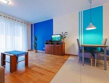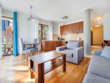 "Sun & Snow apartament dla 4 osób", apartamento de 2 habitaciones 37 hasta 48 m2. Con mobiliario confortable y moderno: salón-dormitorio con 1 sofá-cama y TV satélite. 1 dorm. con 1 cama doble. Cocina abierta (lavavajillas, 1 Placas de inducción, tostadora, hervidor de agua eléctrico, microondas, cafetera eléctrica). Ducha/WC. Balcón. El alojamiento dispone de: lavadora, plancha, secador de pelo. Internet (Wifi).- Instalaciones