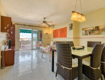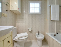 Apartamento de 3 habitaciones 60 m2 en el 4° piso. Luminoso, reformado, con mobiliario confortable y bonito: salón-comedor con TV digital, aire acondicionado y ventilador. Salida a la terraza. 1 dorm. con 2 camas (90 cm, 190 cm de longitud), aire acondicionado. 1 dorm. con 1 cama doble (2 x 90 cm, 190 cm de longitud), aire acondicionado. Salida a la terraza. Cocina (horno, lavavajillas, 2 placas de vitrocerámica, tostadora, hervidor de agua eléctrico, microondas, congelador, cafetera eléctrica). Baño/bidet/WC. Aire acondicionado, aire caliente. Terraza 14 m2. Muebles de terraza. Vista lejana al mar y al paisaje. El alojamiento dispone de: lavadora, plancha, trona, cuna, secador de pelo. Plaza de aparcamiento. A tener en cuenta: TV solamente ES. AT441177A- Características del alojamiento