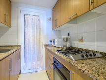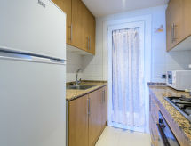 Marina d'Or: Casa de apartamentos "El Cano", confortable. En el centro de Marina d'Or, lugar céntrico, soleado, a orillas del mar, en primera linea de playa, cruzando la calle. Comunitario: piscina (30 x 15 m, 145 - 190 cm de profundidad, Disponible por temporada: 01.Jun. - 15.Sep.). Piscina para niños, ducha exterior. En el inmueble: ascensor. Posibilidad de aparcamiento en la calle. Tienda de comestibles, supermercado 100 m, restaurante, bar, café 50 m, playa de arena 10 m. Grupos de jóvenes sólo bajo petición. Vecindario muy sensible a ruidos. Se ruega respetar la tranquilidad y normas de buen comportamiento.Interior