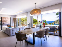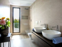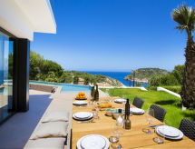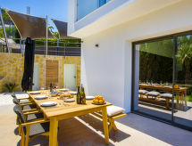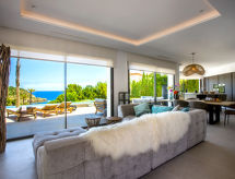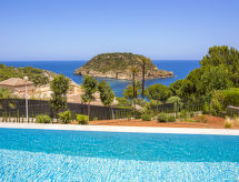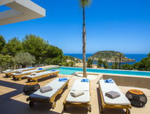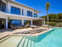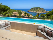 "El Refugio", villa 5 habitaciones 450 m2 en 2 plantas. Espacioso y luminoso, con mobiliario muy moderno y de estilo: salón-comedor con TV satélite, TV digital, aire acondicionado y bomba de calor, caliente. Salida a la terraza, pérgola, a la piscina. Grande cocina abierta (horno, lavavajillas, 4 Placas de inducción, tostadora, hervidor de agua eléctrico, microondas, congelador, cafetera eléctrica) con aire acondicionado y bomba de calor, caliente. Salida a la terraza-jardín, a la piscina. WC separado. En planta inferior: 1 dorm. con 1 cama de matrimonio (2 x 90 cm, 200 cm de longitud), ducha/WC, doble lavabo, aire acondicionado y bomba de calor, caliente. Salida a la terraza. 1 dorm. con 1 cama de matrimonio (2 x 90 cm, 200 cm de longitud), ducha/WC, aire acondicionado y bomba de calor, caliente. Salida a la terraza. 1 dorm. con 1 cama de matrimonio (2 x 90 cm, 200 cm de longitud), aire acondicionado y bomba de calor, caliente. Salida a la terraza. 1 dorm. con 1 cama de matrimonio (2 x 90 cm, 200 cm de longitud), aire acondicionado y bomba de calor, caliente. Salida a la terraza. Ducha/WC, doble lavabo. Terraza-jardín grande, césped. Muebles de terraza, barbacoa, tumbonas, porche, rincón para sentarse. Vista panorámica espléndida al mar. El alojamiento dispone de: lavadora, secadora, plancha, mosquitera, trona, cuna, secador de pelo. Internet (Wifi, gratis). VT-487546-A- Instalaciones