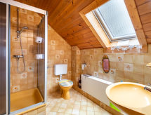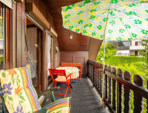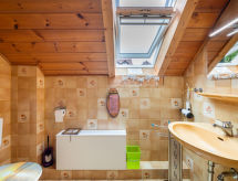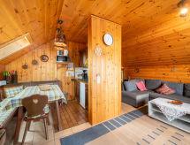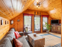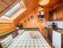 Apartamento de 2 habitaciones 50 m2, en el ático. Vivienda adecuada para 2 adultos + 2 niños. Abuhardillado, con mobiliario rústico y con mucha madera: salón-dormitorio con 1 sofá-cama, mesa de comedor y TV satélite (pantalla plana). Salida al balcón. 1 dorm. con 2 camas. 1 dorm., pequeño con 1 sofá-cama. Rincón-cocina (2 fogones, tostadora, hervidor de agua eléctrico, microondas, cafetera eléctrica). Ducha/WC. Calefacción por suelo. Balcón. Muebles de balcón. El alojamiento dispone de: cuna. Internet (Wifi, gratis). A tener en cuenta: apartamento para no fumadores. Detector de humo.- Instalaciones