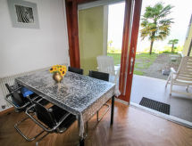 Germignaga a 2 km de Luino: Residencia "Euroville", amplia de 8 plantas. 60 apartamentos en la residencia. Por encima Germignaga, lugar elevado en un barrio residencial, a 1.5 km de un lago. Comunitario: terreno, jardín, cuidado con césped y árboles, piscina (15 x 7 m, Disponible por temporada: 01.Jun. - 30.Sep.). Ducha exterior, tenis, tenis de mesa, parque infantil, mantenimiento de la piscina a través del propietario/jardinero. En el inmueble: ascensor, azotea. Aparcamiento en el mismo terreno. Supermercado 1.5 km, restaurante 1.3 km, bar 1.3 km, estación de tren "Luino" 2.5 km, playa de gravilla 1.5 km, piscina cubierta 3 km. Campo de golf (18 hoyos) 18 km. A tener en cuenta: coche recomendable.Interior