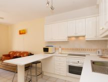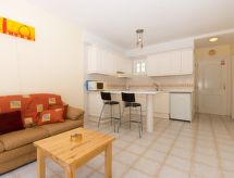 Apartamento de 2 piezas para 2 personas, 45 m2 en el 2° piso, con mobiliario moderno. Salón-comedor con TV regional y TV satélite. Fumar no permitido. Dormitorio con 2 camas individuales. Cocina abierta con 4 quemadores, microondas, horno y frigorifico. Ducha/WC. Balcón 15 m2, terraza 30 m2, muebles de terraza, 2 tumbonas. Otros equipamientos: trona, plancha, lavadora. CTCD/19548/2019- Características del alojamiento