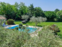 Apartamento de 3 habitaciones 45 m2 en el 1° piso. Salón-comedor con TV satélite (pantalla plana), aire acondicionado. Salida a la terraza. 1 dorm. con 1 cama de matrimonio (160 cm, 200 cm de longitud). 1 dorm. con 2 camas (80 cm, 200 cm de longitud). Cocina abierta (2 fogones, microondas, congelador, cafetera eléctrica). Ducha/WC. Terraza 6 m2, cubierta. Muebles de terraza. Vista a la piscina y al jardín. El alojamiento dispone de: Internet (Wifi, gratis).- Instalaciones