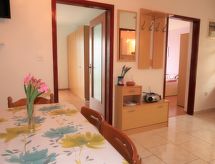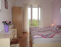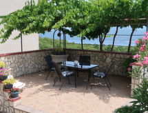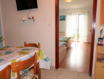 "Fonović (MOD115)", apartamento de 2 habitaciones 60 m2, en la planta baja. 1 dorm. con 1 cama y 1 cama de matrimonio (180 cm, 200 cm de longitud). Salida al balcón. 1 dorm. con 1 cama doble. Salida al balcón. Comedor con TV satélite. Salida a la terraza. Cocina abierta (horno, 4 placas de vitrocerámica, tostadora, hervidor de agua eléctrico, microondas, congelador, cafetera eléctrica). Ducha/WC. Calefacción. Balcón, terraza 25 m2. Muebles de terraza, muebles de balcón, tumbonas (2). Vista al mar. El alojamiento dispone de: mosquitera. Internet (Wifi, gratis). A tener en cuenta: casa para no fumadores.- Instalaciones