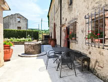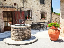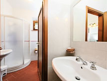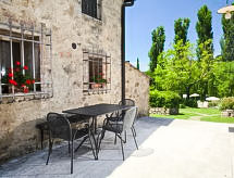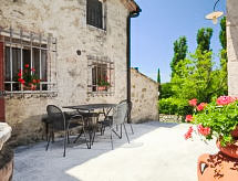 "Forno", apartamento de 4 habitaciones 85 m2, en la planta baja. Con mobiliario confortable y de buen gusto: salón-comedor con 1 sofá-cama doble y chimenea (sólo con función decorativa), TV satélite. 1 dorm. doble. 1 dorm. doble, grande con ducha/bidet/WC. Salida al jardín. Rincón-cocina (horno, microondas, congelador, cafetera eléctrica). Ducha/bidet/WC. El alojamiento dispone de: caja fuerte.- Instalaciones