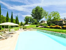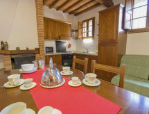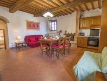 Casa de campo "Rapolano", reformada, rodeada de campos. A 1.5 km del centro de Rapolano Terme, a 25 km del centro de Siena, a 85 km del centro de Firenze. Comunitario: terreno (vallado) con césped y flores, piscina vallada (6 x 12 m, 90 - 180 cm de profundidad, Disponible por temporada: 15.May. - 01.Oct.). Tenis de mesa, terraza-jardín, terraza, muebles de jardín, barbacoa. En el inmueble: recepción, acceso a internet, Wifi, calefacción central, lavadora (uso comunitario, extra), posibilidad de pagar la calefacción en plaza, calefacción disponible desde el 01.11. al 15.04.. Aparcamiento junto a la casa. Supermercado 2 km, restaurante 2 km, estación de tren "Rapolano Terme" 2 km, piscina termal 2 km. A tener en cuenta: calle principal en la proximidad. Se pueden reservar alojamientos adicionales.Interior