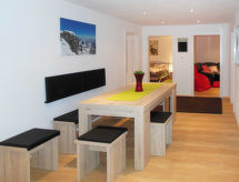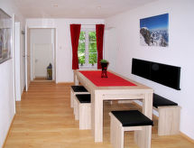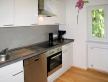 "Franke", apartamento de 4 habitaciones 100 m2 en el 1° piso. Con mobiliario moderno y de buen gusto: salón con TV cable y CD. Salida al balcón. 2 dorm., cada habitación con 1 cama doble. 1 dorm. con 2 camas. Entrada grande con mesa de comedor. Pequeña cocina (4 fogones, horno, lavavajillas, tostadora, hervidor de agua eléctrico, cafetera eléctrica). Ducha/WC, WC separado. Calefacción gasóleo. Balcón. Muebles de balcón. El alojamiento dispone de: Internet (Wifi, gratis). A tener en cuenta: apartamento para no fumadores. Entrada privada, detector de humo.- Instalaciones