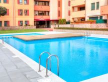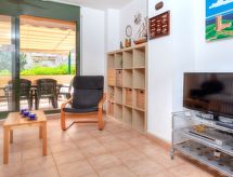 "Gardenia", apartamento de 3 habitaciones 55 m2, en la planta baja. Espacioso y luminoso, con mobiliario funcional y agradable: salón-comedor con TV satélite y TV digital. Salida a la terraza-jardín. 1 dorm., grande con 1 x 2 literas (90 cm, 190 cm de longitud), 1 cama de matrimonio (150 cm, 190 cm de longitud). 1 dorm. con 1 cama de matrimonio (135 cm, 190 cm de longitud). Grande cocina (horno, lavavajillas, 4 placas de vitrocerámica, microondas, cafetera eléctrica). Salida a la terraza-jardín. Baño/ducha/bidet/WC. Ningún tipo de calefacción. Terraza grande. Muebles de terraza, tumbonas (2). Vista a la localidad. El alojamiento dispone de: lavadora, plancha, trona, cuna, secador de pelo. Internet (Wifi, gratis). Plaza de aparcamiento n. 192 (cubierto). Adecuado para familias. 1 mascota / perro. HUTG023039- Características del alojamiento