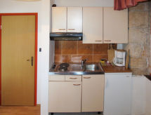 "Gortan (KST101)", apartamento de 2 habitaciones 40 m2 en el 1° piso. Salón-comedor con TV satélite y aire acondicionado. 1 dorm. con 1 cama y 1 cama doble. Pequeña cocina abierta (2 fogones, tostadora, hervidor de agua eléctrico, cafetera eléctrica). Ducha/WC. Aire acondicionado (extra). Terraza. Muebles de terraza. A tener en cuenta: casa para no fumadores. Permitido máximo 1 mascota / perro.- Instalaciones