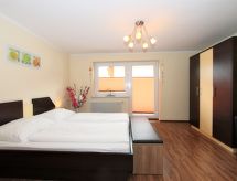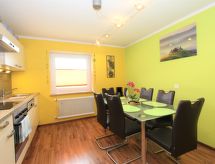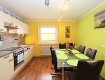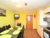 Apartamento de 4 habitaciones 110 m2 en el 1° piso. Con mobiliario moderno y agradable: entrada grande. Salida al balcón. 2 dorm. dobles. 1 dorm. doble. Salida al balcón. Cocina-comedor (horno, lavavajillas, 4 placas de vitrocerámica, microondas, congelador, cafetera eléctrica) con mesa de comedor y TV satélite (pantalla plana). Ducha, WC separado. Balcón grande, orientación sur y orientación oeste. Muebles de balcón. Vista bonita al paisaje y a la localidad. El alojamiento dispone de: trona, cuna (extra). Internet (Wifi, extra). A tener en cuenta: apartamento para no fumadores.- Instalaciones