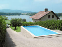 Casa 4 habitaciones 130 m2 en 2 plantas. Con mobiliario agradable: salón-comedor con mesa de comedor, TV satélite y estufa de lena. Cocina abierta (horno, 4 placas de vitrocerámica, tostadora, hervidor de agua eléctrico, microondas, congelador, cafetera eléctrica). Ducha, WC separado. Planta superior: 1 dorm., abuhardillado, abierto con 2 camas. 1 dorm., abuhardillado con 2 camas. 1 dorm., abuhardillado con 1 cama, 1 cama doble y TV (pantalla plana). Salida al balcón. Balcón, terraza. Muebles de terraza, barbacoa (portátil), tumbonas (4). Vista panorámica espléndida al lago. El alojamiento dispone de: cuna. A tener en cuenta: apartamento para no fumadores. Permitido máximo 2 mascotas pequeñas / perros.- Instalaciones