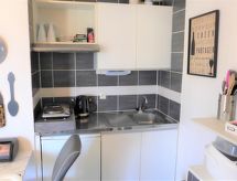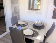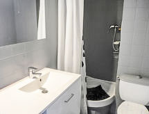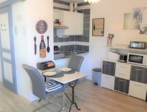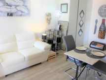 Apartamento de 2 habitaciones 24 m2 en el 3° piso, orientación norte. Salón-comedor con TV (pantalla plana), equipo de música y DVD. Salida al balcón cubierto. 1 dorm. con 1 cama de matrimonio (140 cm, 190 cm de longitud). Rincón-cocina (2 fogones, tostadora, hervidor de agua eléctrico, microondas, cafetera eléctrica, Cápsulas de café (krups) extra). Ducha/WC. Muebles de balcón. Vista al mar. El alojamiento dispone de: plancha, secador de pelo. Internet (Wifi, extra). A tener en cuenta: apartamento para no fumadores. Detector de humo.- Características del alojamiento