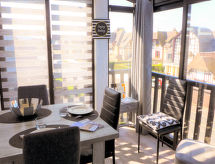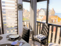 Residencia "Kennedy", de 3 plantas. En la localidad, a 1 km del centro de de Villers sur mer, a 15 m del mar, a 15 m de la playa, cruzando la calle. Posibilidad de aparcamiento en la calle. Tienda 1 km, centro comercial 100 m, restaurante 500 m, piscina termal "Thalasso de Deauville" 6.8 km. Campo de golf (18 hoyos) 5.5 km. A tener en cuenta: sin ascensor. La entrega de llaves se realiza por la agencia Interhome en Cabourg, 12 km.Interior