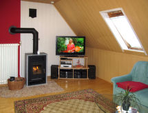 Apartamento de 2 habitaciones 50 m2, en el ático. Con mobiliario funcional: salón-dormitorio abuhardillado con 1 sofá-cama doble, chiminea nórdica, TV satélite, radio, CD y DVD. 1 dorm., abuhardillado con 1 cama de matrimonio. Rincón-cocina (4 fogones, horno, tostadora, hervidor de agua eléctrico, microondas, cafetera eléctrica) con mesa de comedor. Ducha/WC. Calefacción de gas. El alojamiento dispone de: trona, cuna (extra). Internet (Wifi, gratis). A tener en cuenta: apartamento para no fumadores. Detector de humo.- Instalaciones