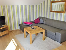Apartamento de 2 habitaciones 45 m2, en la planta baja. Con mobiliario moderno y de buen gusto: salón-comedor 30 m2 con TV satélite (pantalla plana), radio y CD. Salida a la terraza. 1 dorm. 9 m2 con 1 cama doble (2 x 90 cm, 200 cm de longitud). Cocina abierta (horno, 4 placas de vitrocerámica, cafetera eléctrica). Ducha/WC. Terraza pequeña. Muebles de terraza. Vista al paisaje. El alojamiento dispone de: secador de pelo. Internet (Wifi, gratis). A tener en cuenta: apartamento para no fumadores. Detector de humo.- Instalaciones