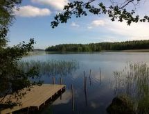 60 km al norte de Heinola. El lago Jääsjärvi a 40 m (30 km largo, 1 km ancho), agua somera, duro fondo lijado de arcilla. Bote propio. Casa de madera de 1970, renovada en 1996 y 2000. Cocina, salón con sofá-cama para 1 persona, dormitorio con 2 camas, sauna, baño, veranda abierta. Entranda al WC desde la veranda. Sauna a orillas de lago, vestidor. En la cocina hay un lavavajillas pequeño. La cabaña tiene un salón espacioso y una terraza grande soleada. La parcela está en su estado natural y es pedregosa (no es lo mejor para niños pequeños). El nivel del agua en la orilla varía lo normal 20-50 cm. Buena agua potable del grifo Lahti a 100 km. Licencia de pesca local está incluida en el precio. Posibilidad de equitación a 7 km. Se puede oír el ruido de tráfico (carretera 4) en la cabaña.- Instalaciones