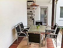 Bungalow 4 habitaciones 108 m2. Salón-comedor grande con TV satélite (pantalla plana), CD. Salida a la terraza. 1 dorm. con 1 cama de matrimonio (180 cm). 1 dorm. con 2 camas. 1 dorm. para niños con 1 x 2 literas. Cocina (4 fogones, horno, lavavajillas, tostadora, hervidor de agua eléctrico, microondas, cafetera eléctrica) con pasa-platos. Baño/WC, ducha/WC. Terraza grande cubierta terraza pequeña cubierta. Muebles de terraza, tumbonas. El alojamiento dispone de: lavadora, teléfono. Internet (Wifi, gratis). Plaza de aparcamiento. A tener en cuenta: permitido máximo 2 mascotas / perros. Detector de humo, extintores. Chimenea exterior.- Características del alojamiento