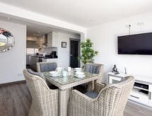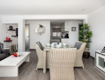 "La Fontana", apartamento de 3 habitaciones 75 m2 en el 3° piso. Luminoso, completamente reformado en 2021, con mobiliario muy bonito y moderno: salón-comedor con TV digital, aire acondicionado y bomba de calor, caliente. Salida a la terraza. 1 dorm. con 1 cama de matrimonio (160 cm, 190 cm de longitud), aire acondicionado y bomba de calor, caliente. Salida a la terraza. 1 dorm. con 2 camas (90 cm, 190 cm de longitud). Cocina abierta (horno, lavavajillas, 4 placas de vitrocerámica, tostadora, microondas, congelador, cafetera eléctrica). Ducha/WC. Terraza terraza pequeña. Muebles de terraza. Vista al paisaje y al canal. El alojamiento dispone de: lavadora, plancha, cuna, secador de pelo. Internet (Wifi, gratis). Plaza de aparcamiento. A tener en cuenta: TV solamente ES. AT-468376-A- Instalaciones