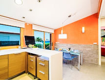 Villa "La Gaviota", amplia, confortable, lujosa de 2 plantas. En el barrio de El Arenal, a 40 m del mar. Privado: jardín bonito 1'300 m2 (vallado) con césped y plantas, piscina (5 x 10 m, Disponible por temporada: 01.Ene. - 31.Dic.) con escalera interior. Ducha exterior. En el inmueble: calefacción central, aire acondicionado. Tienda, supermercado, restaurante 100 m, panadería 200 m, playa de arena "El Arenal" 100 m. Puerto deportivo 3 km, campo de golf (9 hoyos) 6 km, tenis 500 m. Grupos de jóvenes sólo bajo petición. Acceso directo al mar.Interior