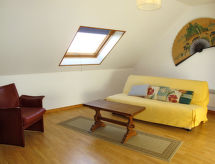 "La Jolie Vague (BGY400)", casa 4 habitaciones 110 m2 en 2 plantas. Luminoso, con mobiliario agradable: salón-comedor con mesa de comedor y TV satélite. Salida a la terraza. 1 dorm. con 1 cama de matrimonio (1 x 160 cm, 200 cm de longitud). Salida a la terraza. Cocina abierta (1 fogón, horno, lavavajillas, 3 fuegos, tostadora, hervidor de agua eléctrico, microondas, cafetera eléctrica) con mesa de comedor. Ducha, WC separado. Planta superior: 2 dorm., abuhardillados, cada habitación con 1 cama de matrimonio (160 cm, 200 cm de longitud). 1 dorm. con 1 cama (90 cm, 200 cm de longitud), 1 cama de matrimonio (160 cm, 200 cm de longitud). Altillo abuhardillado, abierto pequeño. Ducha. Calefacción eléctrica. Suelo de parquet. Terraza. Muebles de terraza, barbacoa, tumbonas (4), trastero. Vista bonita al mar y al paisaje. El alojamiento dispone de: lavadora, plancha, trona, cuna. Internet (Wifi, gratis). A tener en cuenta: casa para no fumadores. Detector de humo. Si el número de personas que ocupan la casa vacacional fuera inferior al máximo posible, no todos los dormitorios estarán disponibles.- Instalaciones