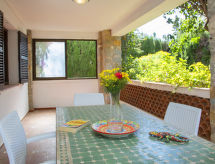 "La Paloma", villa 7 habitaciones 150 m2 en 3 plantas. Luminoso, con mobiliario funcional y agradable: salón-comedor con chimenea (sólo con función decorativa), TV satélite, TV digital y canales internacionales. Salida al balcón acristalado. 1 dorm. con 2 camas (90 cm, 190 cm de longitud), ventilador. 1 dorm. con 2 camas (90 cm, 190 cm de longitud), ventilador. 1 dorm. con 1 cama de matrimonio (135 cm, 190 cm de longitud), ventilador. Cocina (4 fogones, horno, tostadora, hervidor de agua eléctrico, microondas, cafetera eléctrica). Ducha/bidet/WC, WC separado. Ningún tipo de calefacción. En planta inferior: (escalera exterior) salón con TV digital, canales internacionales y ventilador. Salida al balcón cubierto. 2 dorm., cada habitación con 2 camas (90 cm, 190 cm de longitud), ventilador. Pequeña cocina (4 fogones, horno, tostadora, hervidor de agua eléctrico, microondas, cafetera eléctrica). Baño/WC. Calentador. Suelo de piedra natural. Terraza grande. Muebles de terraza, barbacoa, tumbonas. Vista al jardín. El alojamiento dispone de: lavadora, plancha, trona, cuna hasta 2 años, secador de pelo. Internet (Wifi, gratis). Plaza de aparcamiento (2 Coches). 1 mascota / perro. No hay conexión interna entre las plantas. R0000000001- Características del alojamiento