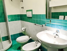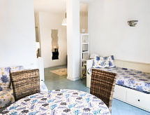 "Pithecusa", apartamento de 3 habitaciones 80 m2 en el 1° piso. Luminoso, con mobiliario funcional y confortable: salón-comedor abierto con 1 cama, mesa de comedor y TV cable (pantalla plana), aire acondicionado y bomba de calor, caliente. Salida al balcón. 1 dorm. doble con ventanal. 1 dorm. con 1 x 2 literas. Pequeña cocina (4 fogones, horno, congelador). 2 ducha/bidet/WC. Balcón pequeño 5 m2. Muebles de balcón. Vista muy bonita al mar y a la localidad. El alojamiento dispone de: lavadora, secador de pelo. Internet (Wifi, gratis). Adecuado para familias.- Instalaciones