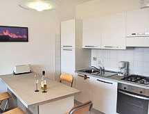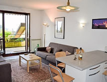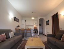 Apartamento de 3 habitaciones 70 m2 en el 1° piso. Con mobiliario funcional: salón-comedor con 1 sofá-cama doble y TV satélite. Salida a la terraza. 2 dorm., cada habitación con 1 cama. Cocina abierta (4 fogones, horno, lavavajillas, congelador, cafetera eléctrica). Ducha/bidet/WC. Calefacción de gas (extra). Calefacción disponible desde el 15.10. al 15.04. Terraza 6 m2. Muebles de terraza. Vista lejana al lago. El alojamiento dispone de: lavadora. Internet (Wifi, gratis). Garaje. CIR:012020-CNI-00008- Instalaciones