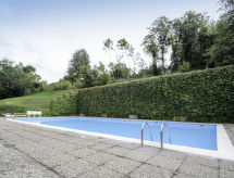 Casa adosada "La Romantica", de 3 plantas. En el aldea Betulla, a 4 km del centro de Luino, lugar tranquilo, elevado, a 2 km de un lago. Comunitario: jardín, piscina (15 x 10 m, Disponible por temporada: 01.Jun. - 15.Sep.). Ducha exterior. En el inmueble: ascensor. Acceso por escaleras (17 escalones) hasta la casa. Supermercado 4 km, restaurante 1 km, estación de tren "Luino" 5 km. A tener en cuenta: coche recomendable.Interior