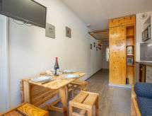 "Vanoise 171" estudio 17 m2 en el 1° piso. Parcialmente reformado en 2021, con mobiliario muy funcional y confortable: salón-comedor con 1 cama (80 cm, 190 cm de longitud), TV (pantalla plana), estufa eléctrica. Salida al balcón, orientación norte. Entrada con 1 cama abatible doble (1 x 140 cm, 190 cm de longitud). Pequeno rincón-cocina (2 placas de vitrocerámica, hervidor de agua eléctrico, cafetera eléctrica, microondas/grill). Ducha/WC. Balcón pequeño 2 m2, orientación norte. El alojamiento dispone de: Internet (Wifi, extra). A tener en cuenta: nevera sin congelador, apartamento para no fumadores. Permitido máximo 1 mascota / perro. Detector de humo.- Características del alojamiento