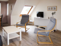 Casa con varias viviendas "Landskron", idónea para niños, agradable. En el centro, a 150 m del centro de Friederikensiel, a 15 km del centro de Jever, a 31 km del centro de Wilhelmshaven, a 2 km del mar. Comunitario: terreno 3'000 m2 con césped y plantas. Muebles de jardín, barbacoa. En el inmueble: calefacción central, lavadora, secadora (uso comunitario, extra). Aparcamiento junto a la casa. Supermercado 4 km, estación de tren "Jever" 15 km, playa de arena "Harlesiel" 9 km, piscina 9 km, piscina cubierta 11 km.Interior