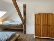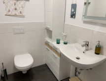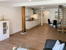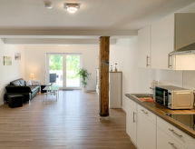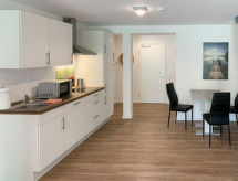 "Langeoog", apartamento de 2 habitaciones 70 m2 en 2 plantas, en la planta baja. Con mobiliario de buen gusto y agradable: salón-comedor con TV satélite (pantalla plana). Salida a la terraza. Rincón-cocina (lavavajillas, 4 placas de vitrocerámica, tostadora, hervidor de agua eléctrico, microondas, cafetera eléctrica). WC separado. Planta superior: 1 dorm., abuhardillado, abierto con 1 cama (80 cm, 200 cm de longitud), 1 cama doble (2 x 90 cm, 200 cm de longitud). Ducha/WC. Muebles de terraza. El alojamiento dispone de: trona (extra). Internet (Wifi, gratis). A tener en cuenta: apartamento para no fumadores. Permitido máximo 1 mascota pequeña / perro. Detector de humo.- Instalaciones