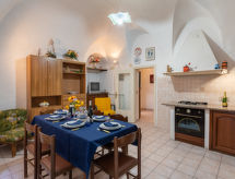 "Le Antiche Volte (SLR215)", casa adosada 5 habitaciones 80 m2 en 3 plantas. Con mobiliario funcional: cocina-comedor (horno pequeño, horno, 4 fuegos, congelador, cafetera eléctrica) con mesa de comedor, TV satélite. Baño/WC. Planta superior: 1 dorm. con 1 cama doble (140 cm). Salida a la terraza. 2 dorm., cada habitación con 1 cama (80 cm). Planta superior 2: 1 dorm. con 1 cama de matrimonio (130 cm), ducha/WC. Salida a la terraza. Calefacción de gas. Terraza. Muebles de terraza. Vista bonita al paisaje, a la localidad y al mar. El alojamiento dispone de: lavadora, trona, cuna. CITRA: 008021-LT-0002- Ubicación
