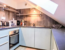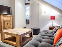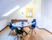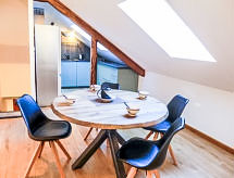 Ático de 3 habitaciones 55 m2 en el 2° piso. Abuhardillado, con mobiliario moderno: salón con TV. 1 dorm. con tragaluz con 1 cama de matrimonio (160 cm, 200 cm de longitud). 1 dorm. con tragaluz con 2 camas (90 cm, 190 cm de longitud). Comedor con tragaluz. Cocina abierta (horno, lavavajillas, 2 placas de vitrocerámica, hervidor de agua eléctrico, microondas, cafetera eléctrica, Cápsulas de café (Nespresso) extra). Baño, WC separado, bañera de hidromasaje. Calefacción eléctrica. Vista parcial a las montañas. El alojamiento dispone de: lavadora. Internet (Wifi, gratis). Plaza de aparcamiento. A tener en cuenta: casa para no fumadores. TV solamente FR. Detector de humo.- Instalaciones