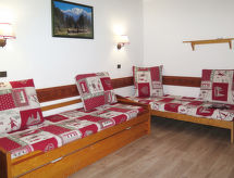 Residencia "Odalys - Le Hameau du Mottaret", 1'800 m s.n. m., bonita, rústica. En el barrio de Méribel-Mottaret, a 3.5 km del centro de Méribel, a 25 km del centro de Moutiers, lugar elevado en una pendiente, a pie de pista. En el complejo: sala de descanso, Wifi (extra). Sala de juegos, sala guardaesquís, lavadora (uso comunitario, extra). Garaje comunitario (extra). Aparcamiento/garaje para vehículos pequeños/medios. Dimensiones: ancho 200 cm. Tienda 500 m, restaurante 1.3 km. Rutas de senderismo desde la casa, pistas de esquí 50 m, alquiler de esquís 100 m. Zonas de esquí populares fácilmente accesibles: Les 3 Vallées. A tener en cuenta: La foto corresponde a una de las viviendas. Los alojamientos pueden diferir en la superficie habitable, la distribución de las habitaciones, el equipamiento y el mobiliario.Interior