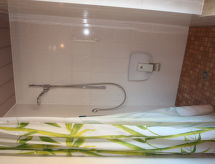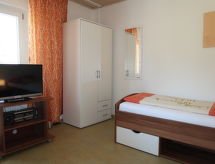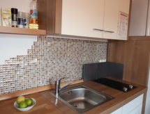 "Leon", apartamento de 4 habitaciones 81 m2, en planta superior. Con mobiliario funcional: 2 dorm., cada habitación con 2 camas. 1 dorm. con 1 x 1 literas (80 cm, 200 cm de longitud), 1 cama de matrimonio (140 cm, 200 cm de longitud). Cocina-comedor (horno, lavavajillas, 2 placas de vitrocerámica, tostadora, microondas, cafetera eléctrica) con mesa de comedor, TV satélite (pantalla plana), radio y CD. Ducha/WC. El alojamiento dispone de: trona. Internet (Wifi, gratis). A tener en cuenta: apartamento para no fumadores. Permitido máximo 2 mascotas / perros.- Instalaciones