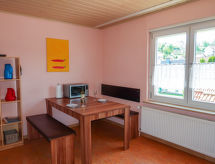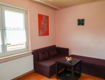 Casa de apartamentos. En la periferia, a 200 m del centro de Nentershausen. Comunitario: jardín, cuidado 1'500 m2 (vallado) con terreno con hierba, estanque. Terraza, muebles de jardín, barbacoa (columpio, cajón de arena). En el inmueble: calefacción central, lavadora, secadora (uso comunitario). Aparcamiento junto a la casa. Supermercado, restaurante 200 m, parada de autobús 100 m, estación de tren "Bebra" 14 km, piscina, piscina cubierta 300 m. Campo de golf 30 km, tenis 2 km. Atracciones en los alrededores: Tannenburg 2 km, Wartburg / Eisenach 40 km. A tener en cuenta: coche recomendable. En este inmueble hay más apartamentos disponibles para reservar. La propiedad con ref: DE6446.105.1 está situada en la misma parcela.Interior