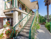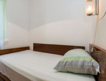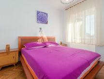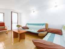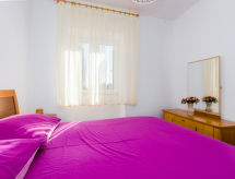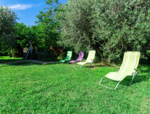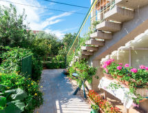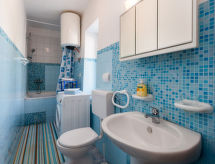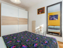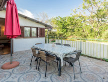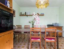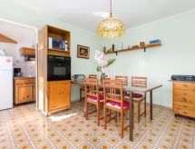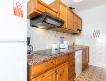 Apartamento de 4 habitaciones 80 m2 en el 1° piso. Salón con TV satélite (pantalla plana). Salida a la terraza. Entrada con aire acondicionado. 1 dorm. con 1 cama doble y 1 plegatín. 1 dorm. con 1 cama doble. 1 dorm. con 1 cama. Comedor. Pequeña cocina abierta (horno, lavavajillas, 4 placas de vitrocerámica, tostadora, microondas, congelador, cafetera eléctrica). Ducha/WC. Terraza 20 m2. Muebles de terraza, barbacoa (portátil), tumbonas. El alojamiento dispone de: lavadora, plancha, trona, cuna (extra). Internet (Wifi, gratis). A tener en cuenta: casa para no fumadores. Permitido máximo 1 mascota / perro.- Instalaciones